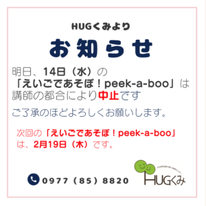 「えいごであそぼ!peek-a-boo」中止のお知らせ