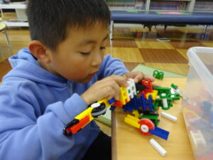 学校帰りに急いで児童館に来て、ものすごい集中力で何やら作り始めた彼。